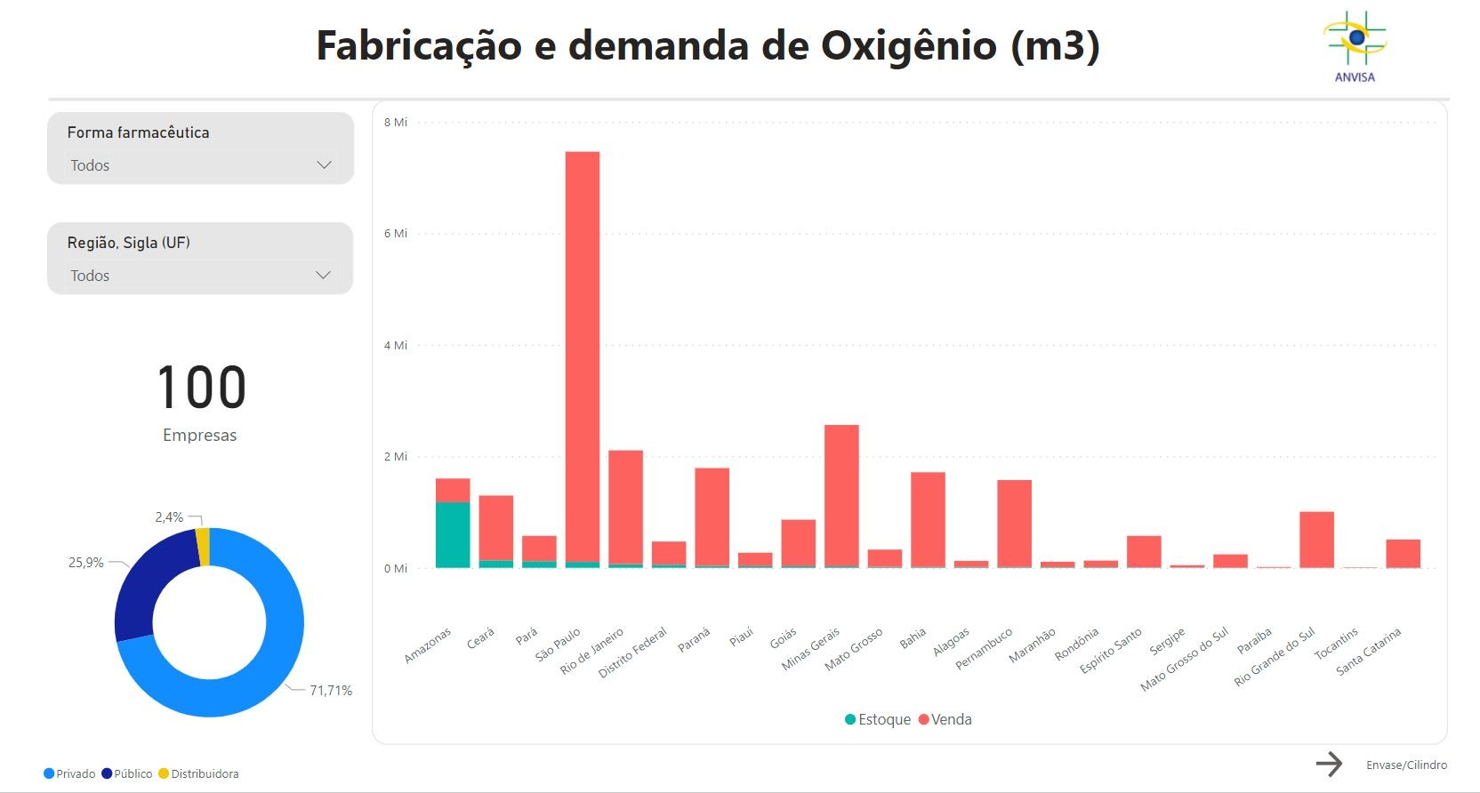 De acordo com a agência, os dados serão atualizados semanalmente e foram fornecidos pelas empresas fabricantes, envasadoras e distribuidoras de oxigênio medicinal.