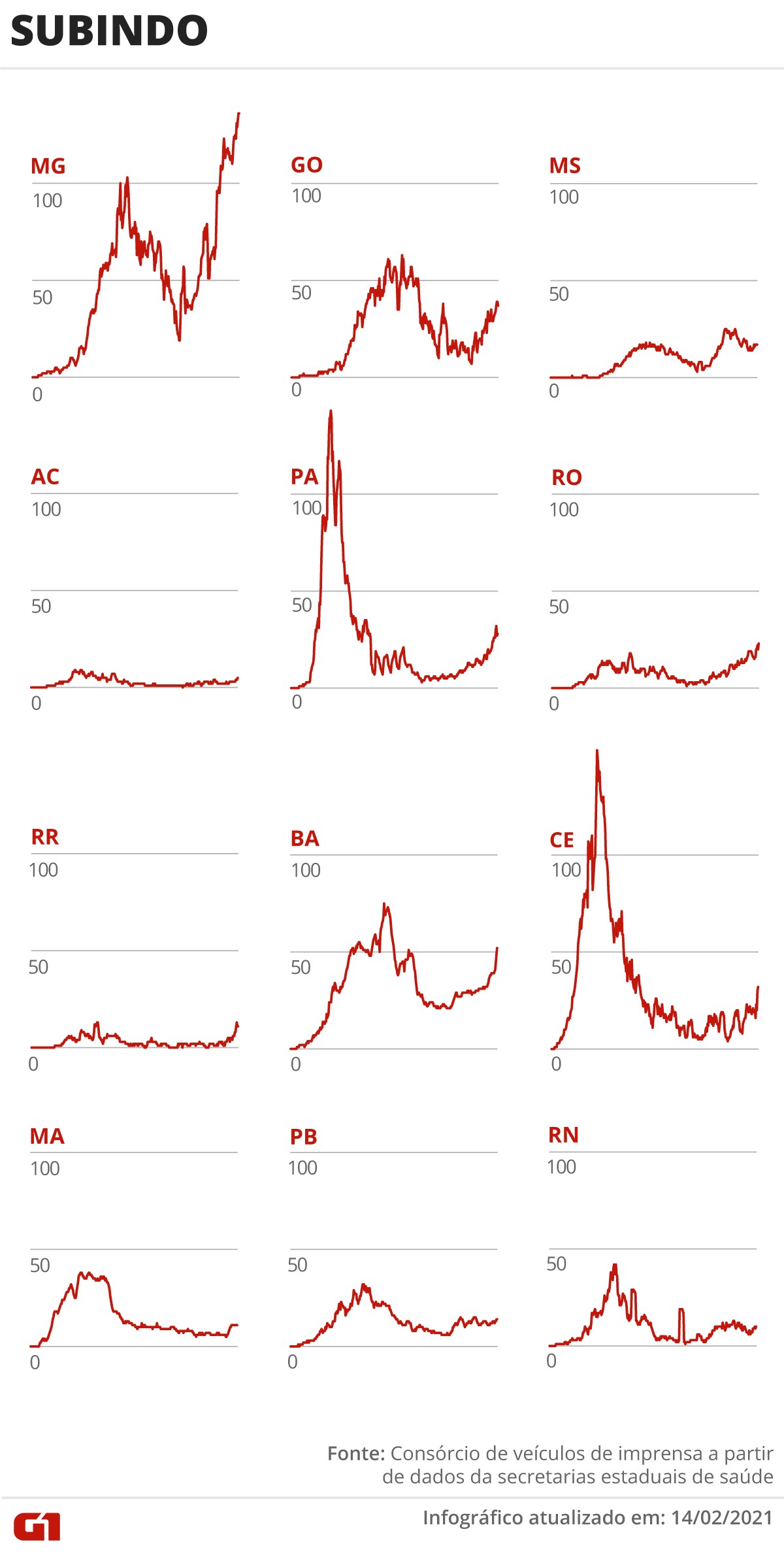 Doze estados estão com alta nas mortes: MG, GO, MS, AC, PA, RO, RR, BA, CE, MA, PB e RN.